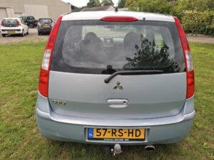 5-Deurs Mitsubishi Colt 1.3 uitgerust met airconditioning, centrale portiervergrendeling, elektrische ramen voor en trekhaak.